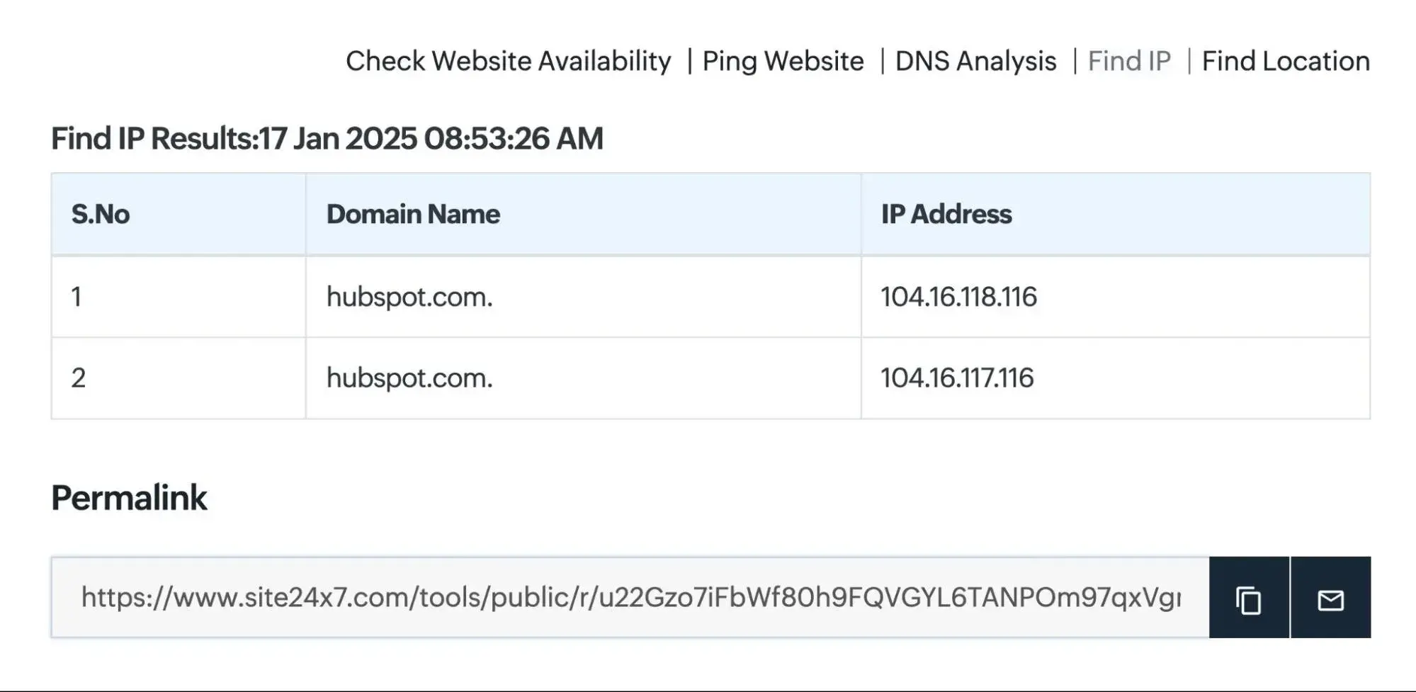 Using tools like Site24x7 or WhatIsMyIPAddress.com, or